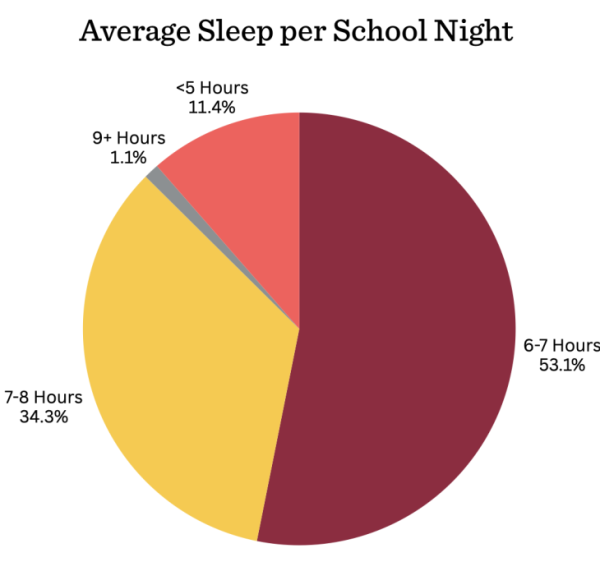 After returning from Covid-19, dTHS changed their start time from 8:00 A.M. to 8:30 A.M., but this extra half hour doesn’t have much of an effect on students getting their recommended nine hours of sleep. 99 percent of students get less than nine hours of sleep per night, and 50 percent get less than seven hours per night.